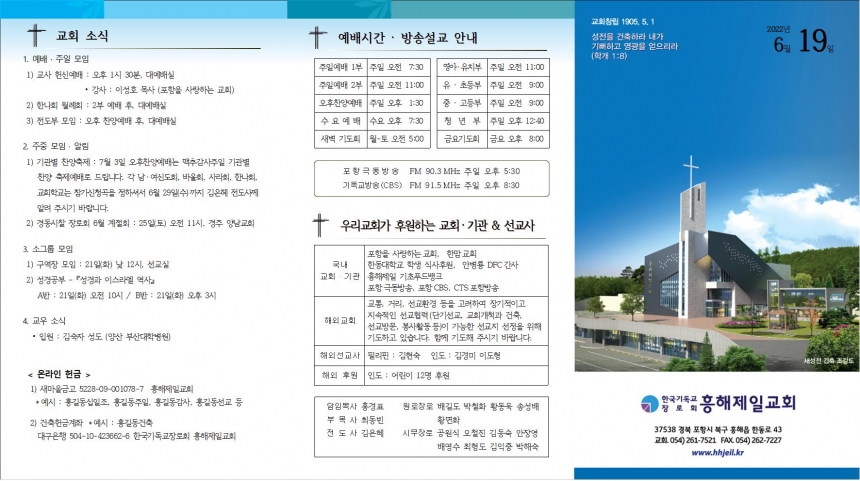 1. ¿¹¹è ¡¤ ÁÖÀÏ ¸ðÀÓ 1) ±³»ç Çå½Å¿¹¹è : ¿ÀÈÄ 1½Ã 30ºÐ, ´ë¿¹¹è½Ç ⦁°»ç : À̼ºÈ£ ¸ñ»ç (Æ÷Ç×À» »ç¶ûÇÏ´Â ±³È¸) 2) ÇѳªÈ¸ ¿ù·Êȸ : 2ºÎ ¿¹¹è ÈÄ, ´ë¿¹¹è½Ç 3) ÀüµµºÎ ¸ðÀÓ : ¿ÀÈÄ Âù¾ç¿¹¹è ÈÄ, ´ë¿¹¹è½Ç