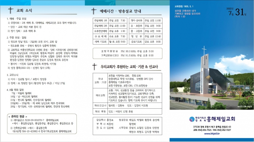 2. ÁÖÁß ¸ðÀÓ ¡¤ ¾Ë¸² 1) ÀüµµºÎ À峯 Àüµµ : 2ÀÏ(È) ¿ÀÀü 10½Ã, ±³È¸ ¾Õ ⦁Àüµµ¿ëǰ ÈÄ¿ø – °ø¿ø½Ä ȲÁø¿ì ÀÓÁ¾¹é ÇÑÇöÈñ 2) ±³È¸Çб³ ¿©¸§¼º°æÇб³¿Í ¼ö·Ãȸ ÈÄ¿ø : ´çȸ ½Ã¹«±Ç»çȸ ÀºÅð±Ç»çȸ ¹Ù¿ïȸ 2³²½ÅµµÈ¸ 1¿©½ÅµµÈ¸ Ȳµ¿¿í-¹Ú¼øÀÚ ¼Û¼º¹è °ø¿ø½Ä-¹ÚÇØ¼÷ ¾ÈÀ念-³²Á¤Èñ ÃÖÇüµµ-¹Ú¸»ÀÚ ÁÖÁø¿Á ½ÅÃ¶È ±èÅÂÁÖ ÃÖÀÌÀÚ ¹Ú±ÍºÐ Æí¼ºÁØ-±èÁ¤¶õ ÀåÁ¤È¯-±è¿Ü¼± ¹®¼øÁ¶ ±è°æ¿Á õ±Í¿Á À¯Áø¼÷ ⦁ºÀ»çÀÚ : ÀÌÁøÈñ ±è¼øÃ¶ ±è°æ¿Á ÃÖ¿µ¾Ö2 ÀÌ±â¿ø 3) ¼º°æ Åëµ¶(2022-23) : ½Å¿µ¹Ì Áý»ç (2µ¶)